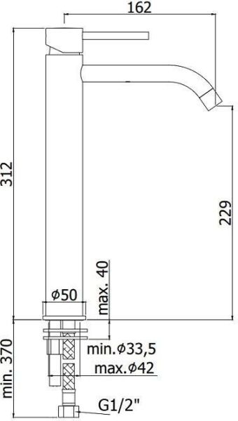 • Высота смесителя: