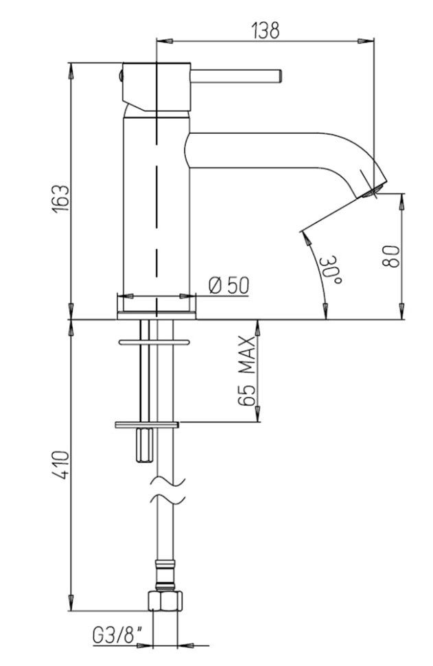 • Высота смесителя: