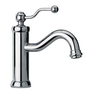 Пожалуй, это наиболее универсальный винтажный смеситель, который можно вписать практически в любой интерьер. Лучше всего он безусловно будет смотреться в окружении голубых, серых или насыщенно-синих цветов. При том, что сдержанный и минималистичный интерьер может стать гораздо мягче и теплее в дополнении с таким смесителем. Поэкспериментируйте с мозаикой в восточном стиле или воссоздайте атмосферу Сицилии при помощи матовых белых стен, небесно-голубых или синих махровых полотенец и таким смесителем в винтажном стиле.