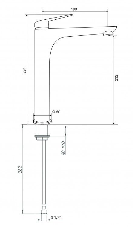 • Увеличенная высота корпуса смесителя позволяет использовать его с накладными раковинами и раковинами-чашами.
