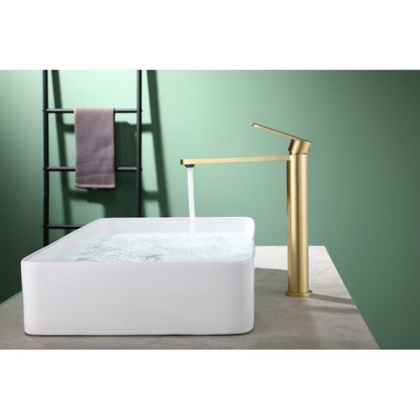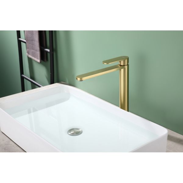 Смеситель выполнен в цвете «золотой сатин», который придаст вашей ванной комнате изысканность и элегантность.