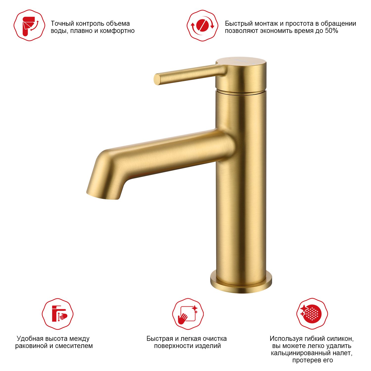 Смеситель для раковины Raglo R20.10.03 золотой сатин купить