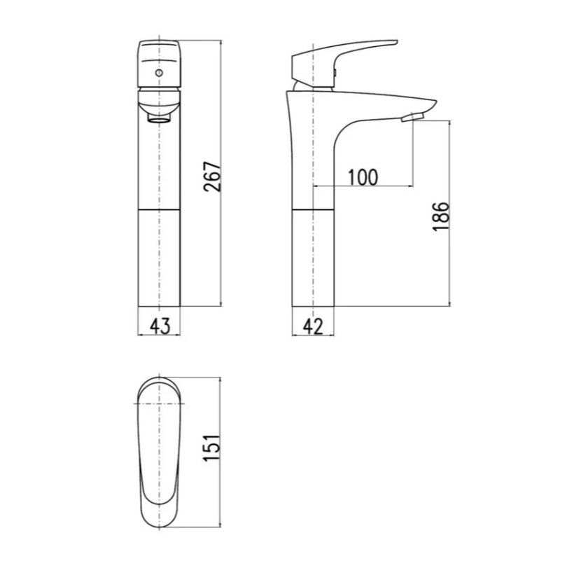Высота смесителя: 267 мм