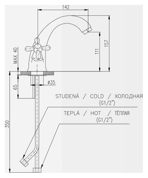 • Высота смесителя: