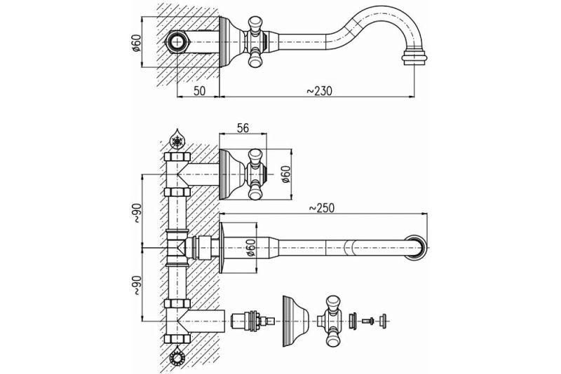 Смеситель для раковины Rav Slezak Morava retro MK431SM БронзаАртикул