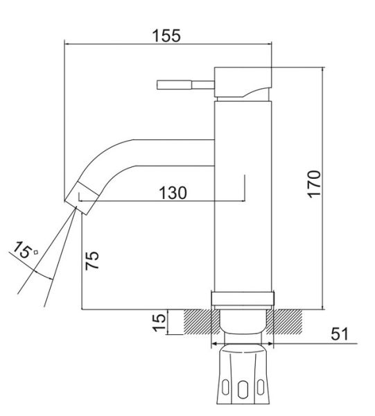 • Высота смесителя: