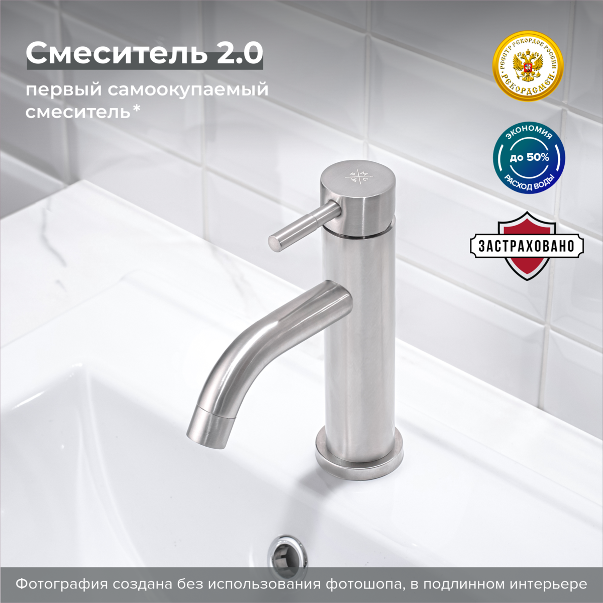 Смеситель для раковины РМС SUS128-001F нержавеющая сталь купить