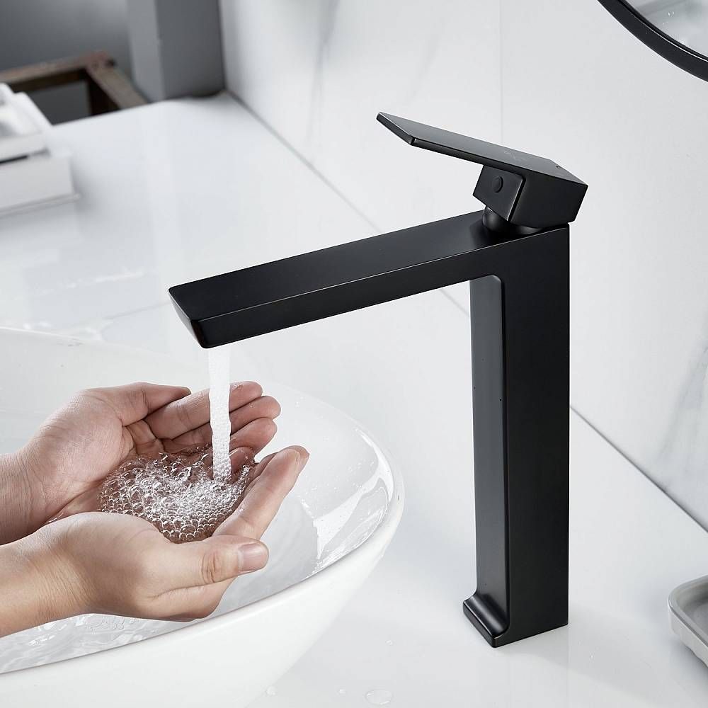 Смеситель для раковины высокий Rose R18H R1811H-1, черный.Материал: латунь.Управление: рычажное.Стилистика дизайна: Современный стиль.Подводка: гибкая, 1/2" .