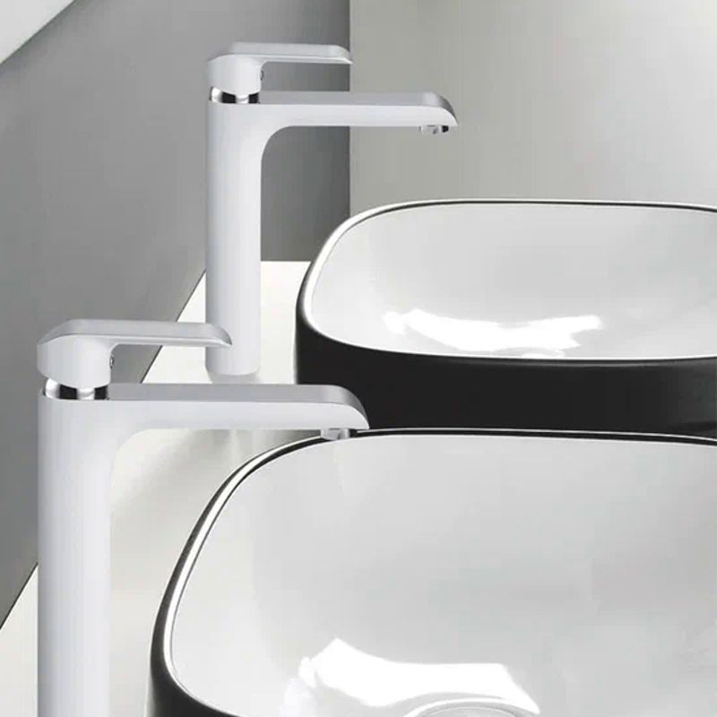 Смеситель для раковины Rose R21F R2111F, белый/хром.Материал: латунь.Управление: рычажное.Стилистика дизайна: Современный стиль.Подводка: гибкая, 1/2" .