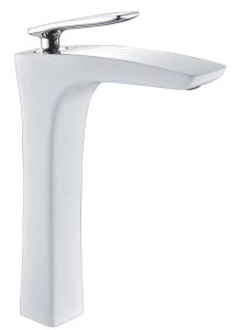Смеситель для раковины высокий Rose R27F R2711F, белый/хром.Материал: латунь.Управление: рычажное.Стилистика дизайна: Современный стиль.Подводка: гибкая, 1/2" .