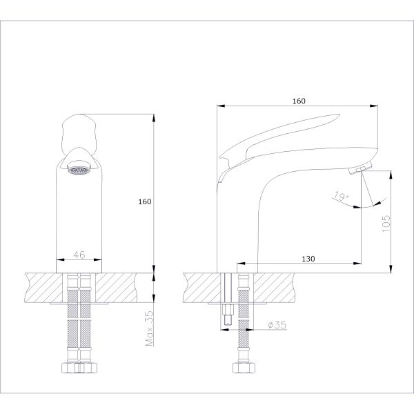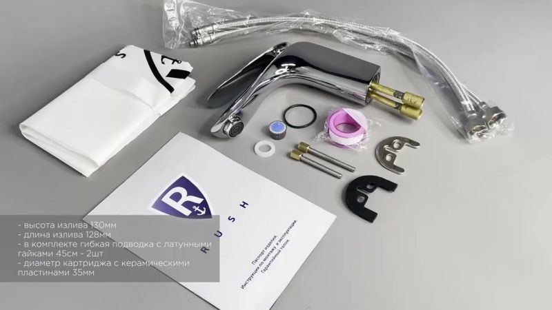 Смеситель для раковины RUSH арт.IS6535-11 с металлической ручкой из коллекции Island изготовлен из высококачественной латуни и имеет рычажное управление. В смеситель установлен картридж D-35 с керамическими пластинами. Высота смесителя 164 мм. Излив литой, неповоротный, 128 мм. Высота излива до аэратора 105 мм. Аэратор изготовлен из пластика с нержавеющим корпусом, угол наклона аэратора- 19 гр. В комплекте гибкая подводка с латунными гайками 45 см - 2шт, универсальная присоединительная группа для установки на горизонтальную поверхность, фум-лента, индивидуальный пакет, паспорт, гарантийный талон.