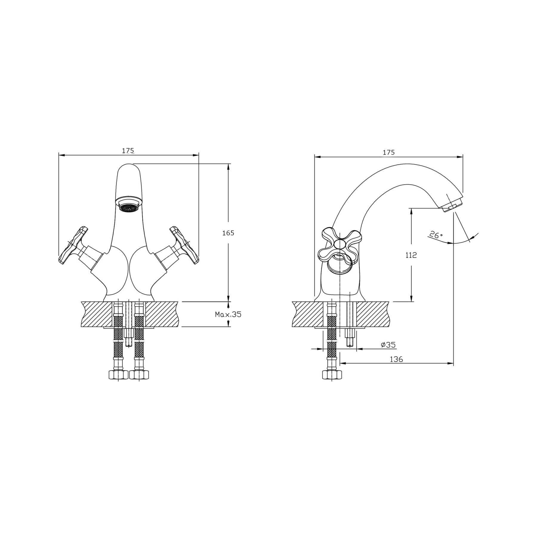 • Высота смесителя: