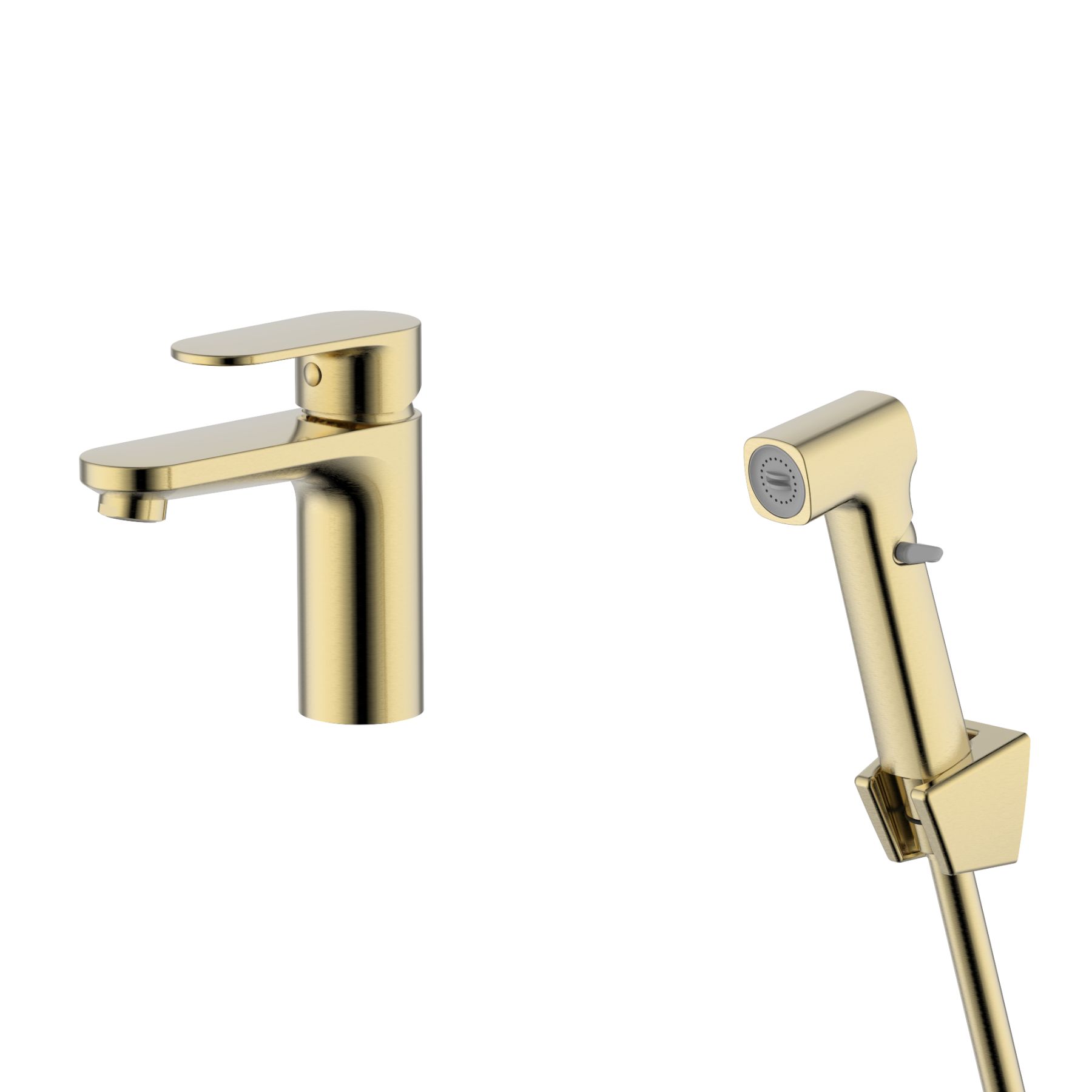 Смеситель для раковины с гигиеническим душем Aquatek Ника AQ1812BG золото