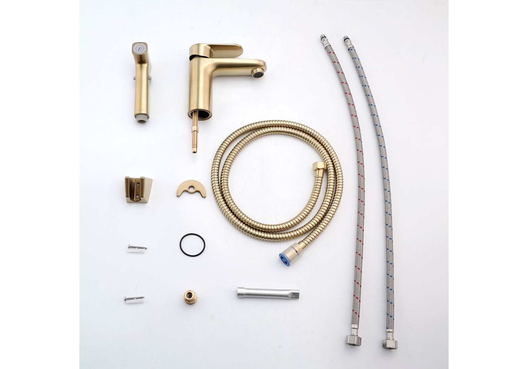 Смеситель для раковины с гигиеническим душем Aquatek Ника AQ1812BG золотоСмеситель