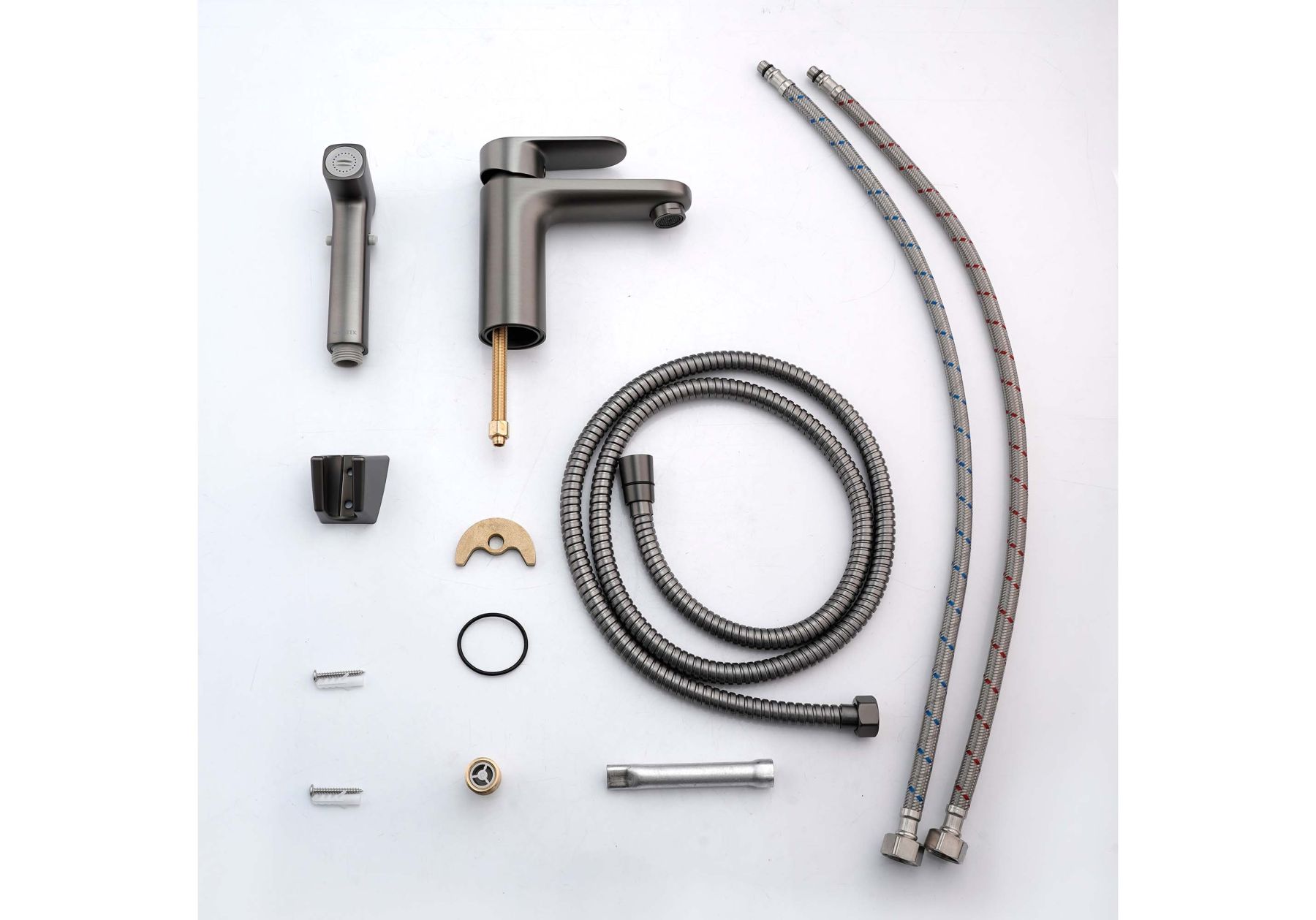 Смеситель для раковины с гигиеническим душем Aquatek Ника AQ1812BGM оружейная сталь
