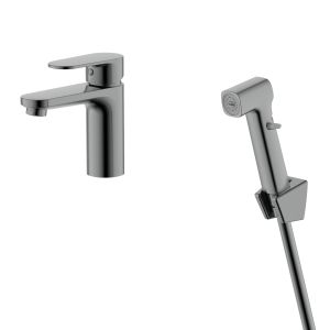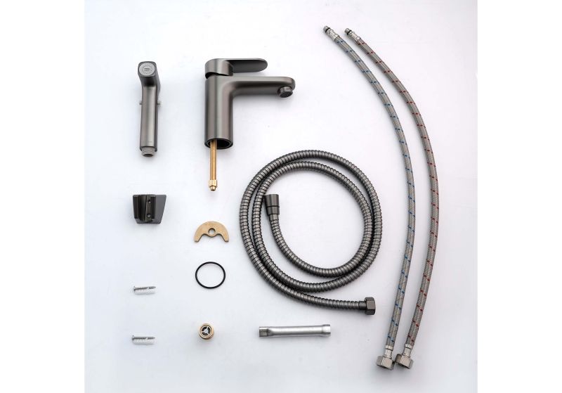 Смеситель для раковины с гигиеническим душем Aquatek Ника AQ1812BGM оружейная стальСмеситель
