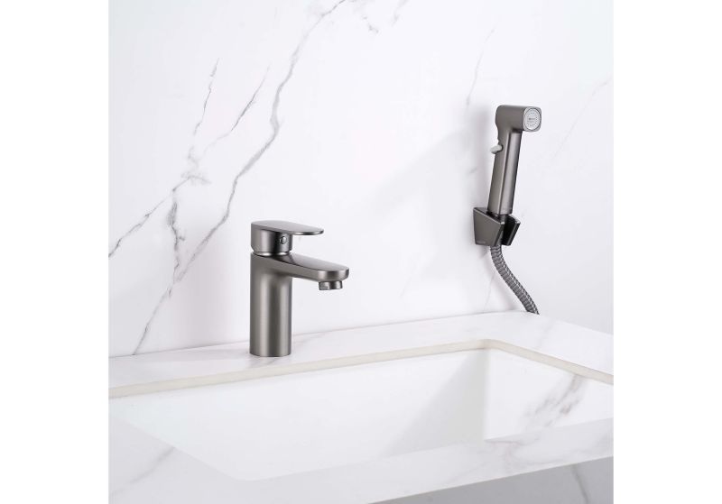 Смеситель для раковины с гигиеническим душем Aquatek Ника AQ1812BGM оружейная сталь купить
