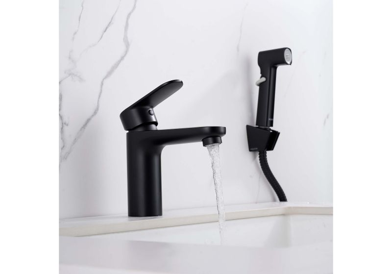 Смеситель для раковины с гигиеническим душем Aquatek Ника AQ1812MB черныйСмеситель