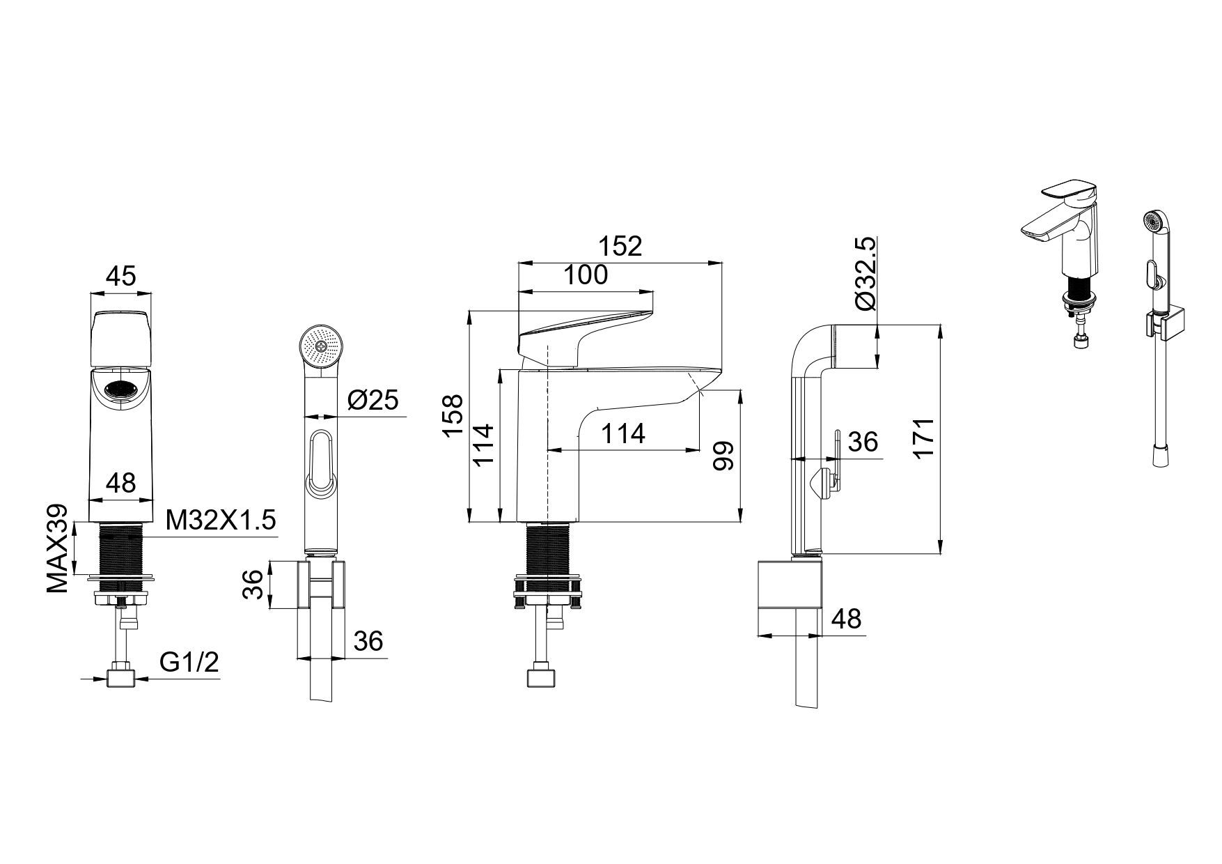Смеситель для раковины с гигиеническим душем Aquatek Вега AQ1012BGM оружейная стальКоллекция Вега