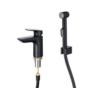 Смеситель для раковины с гигиеническим душем Aquatek Вега AQ1012MB чёрный матовый