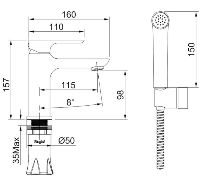 Смеситель для раковины с гигиеническим душем Raglo R03.12 хром