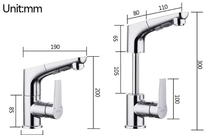• излив: выдвижной, поворотный