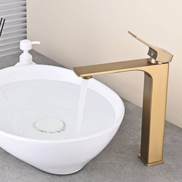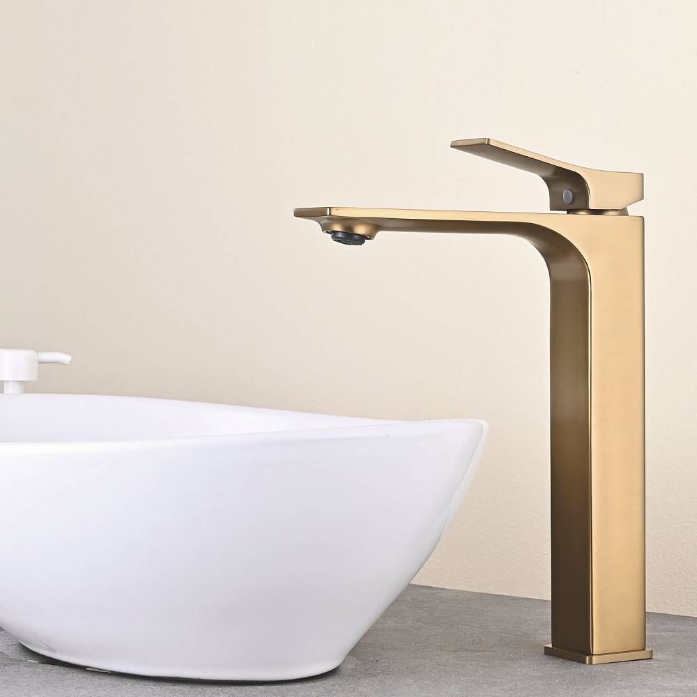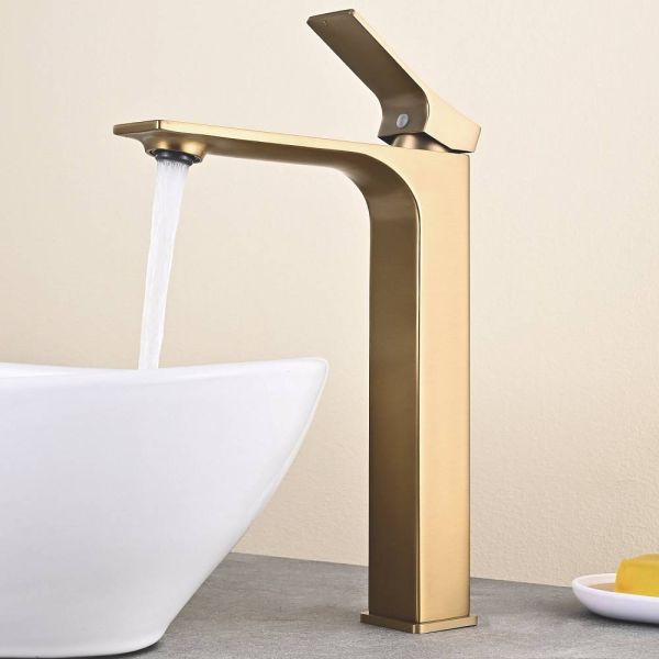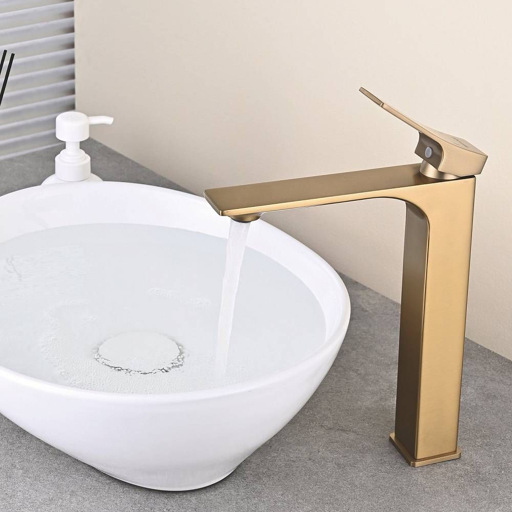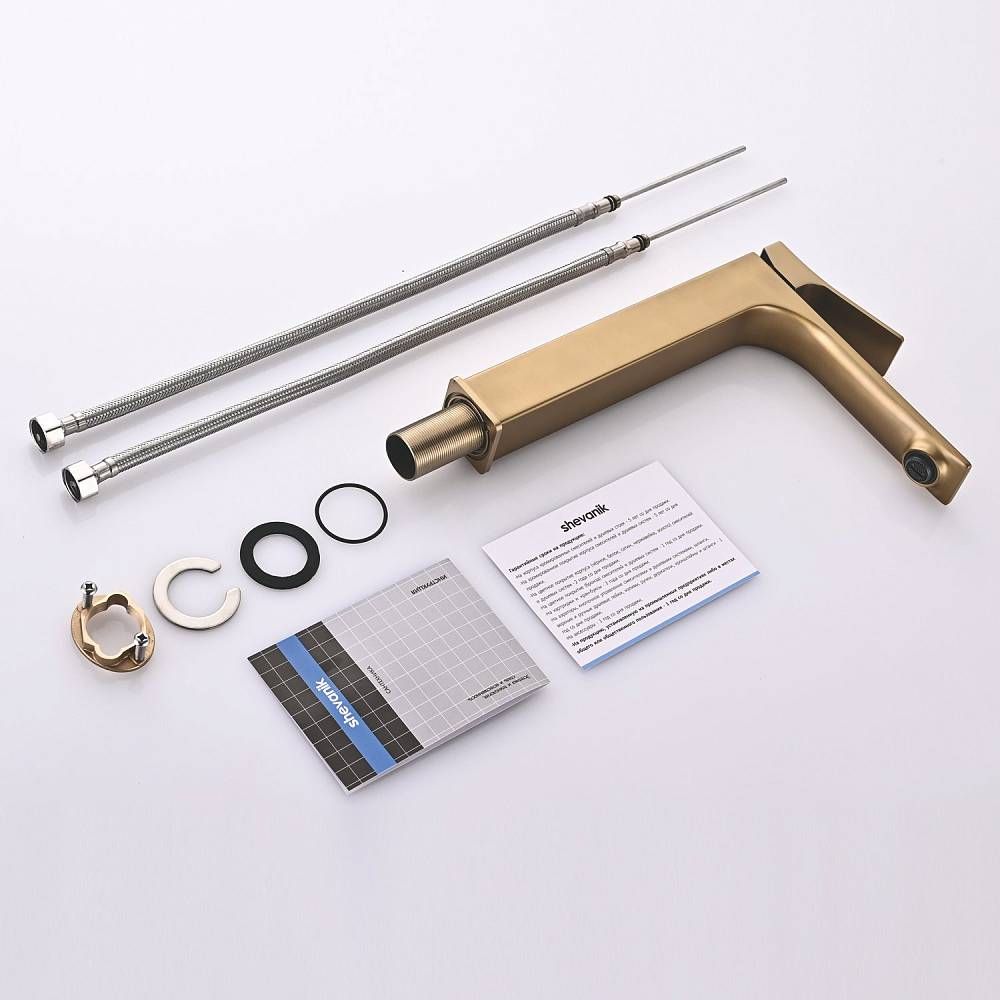 Высокий смеситель для раковины чаши Shevanik S6111G в современном цвете "золотой сатин" – идеальное решение для современной ванной комнаты. Изготовлен из высококачественной латуни, этот смеситель отличается прочностью и долговечностью. Фиксированный излив обеспечивает удобство использования, а аэратор способствует экономии воды и формированию мягкой, приятной на ощупь струи. Керамический картридж обеспечивает плавное управление потоком воды, а рычажный механизм делает настройку температуры воды быстрой и удобной. Стандарт подключения 1/2" и наличие гибкой подводки в комплекте облегчают установку смесителя. Пятилетняя гарантия подтверждает высокое качество и надежность этого смесителя.