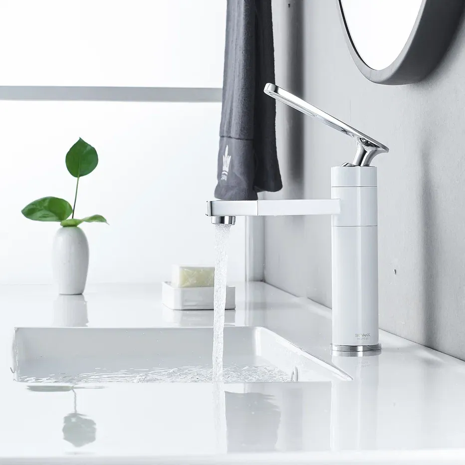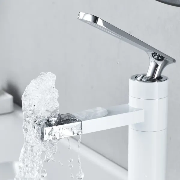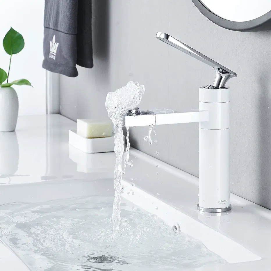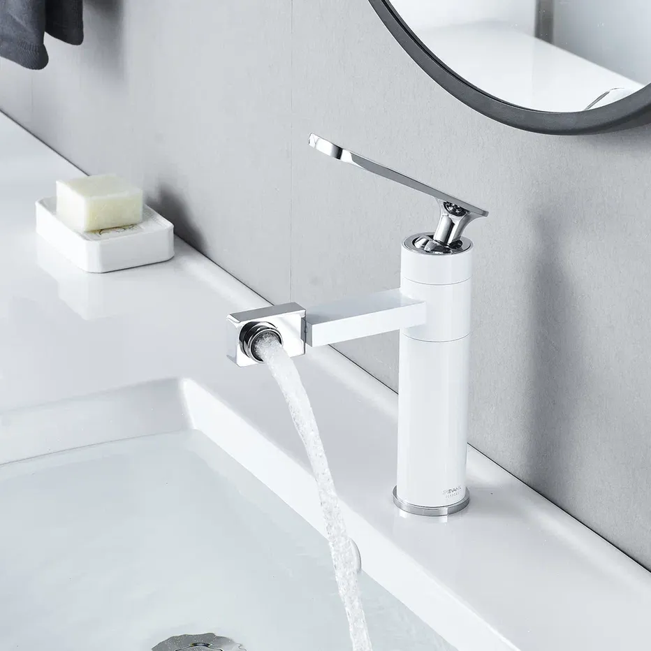 Смеситель для раковины Shevanik S6601F с поворотным носиком белый/хром купить