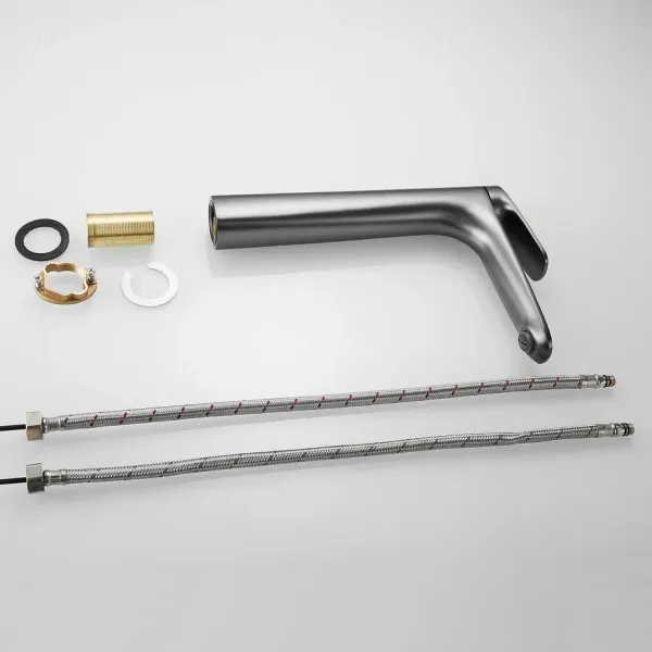 Смеситель для раковины Shevanik S8511T, оружейная сталь.Стилистика дизайна: Современный cтиль.Монтаж: на столешницу.Излив: традиционный, фиксированный.Подводка: гибкая, 1/2" .Материал: латунь.