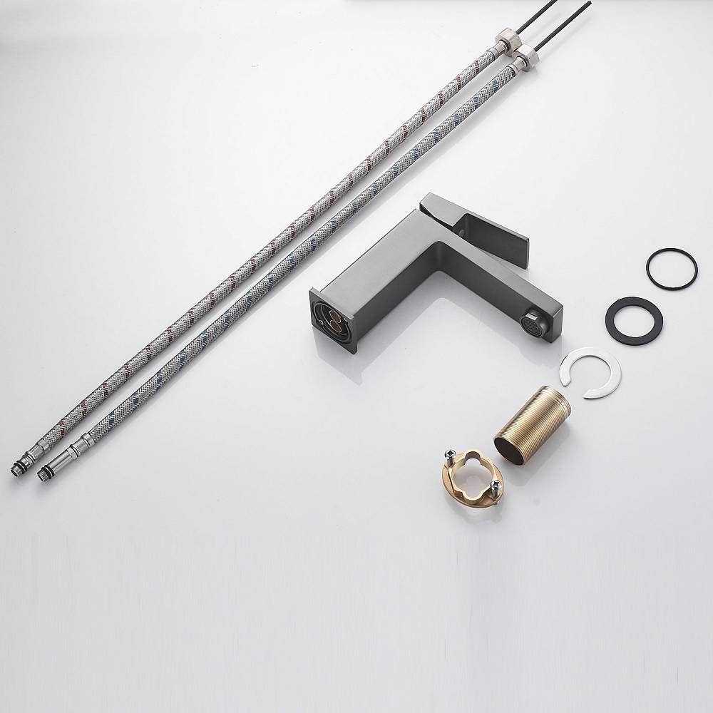 Смеситель для раковины Shevanik S9601T, оружейная сталь.Стилистика дизайна: Современный cтиль.Монтаж: на раковину.Излив: традиционный, фиксированный.Подводка: гибкая, 1/2" .Материал: латунь.