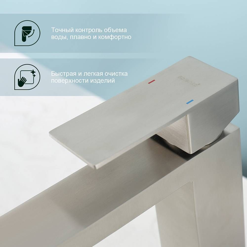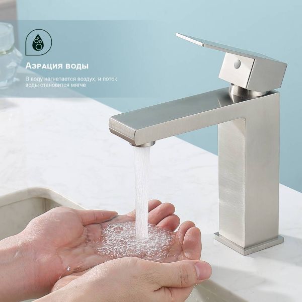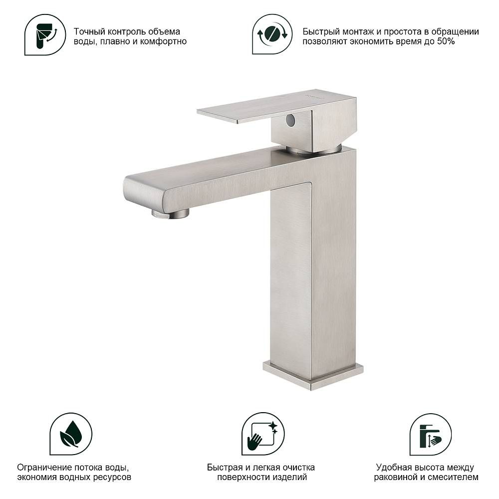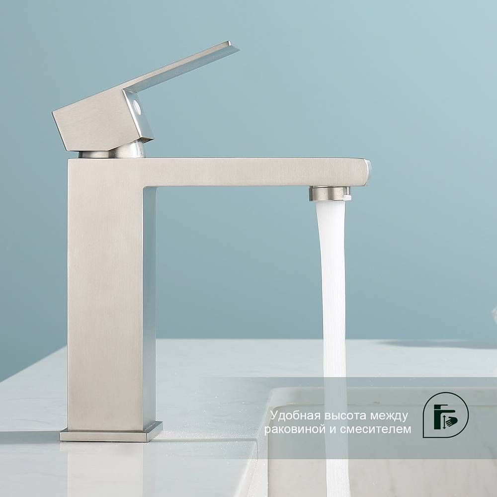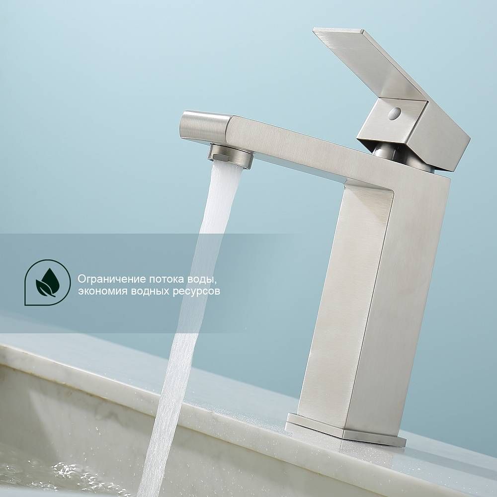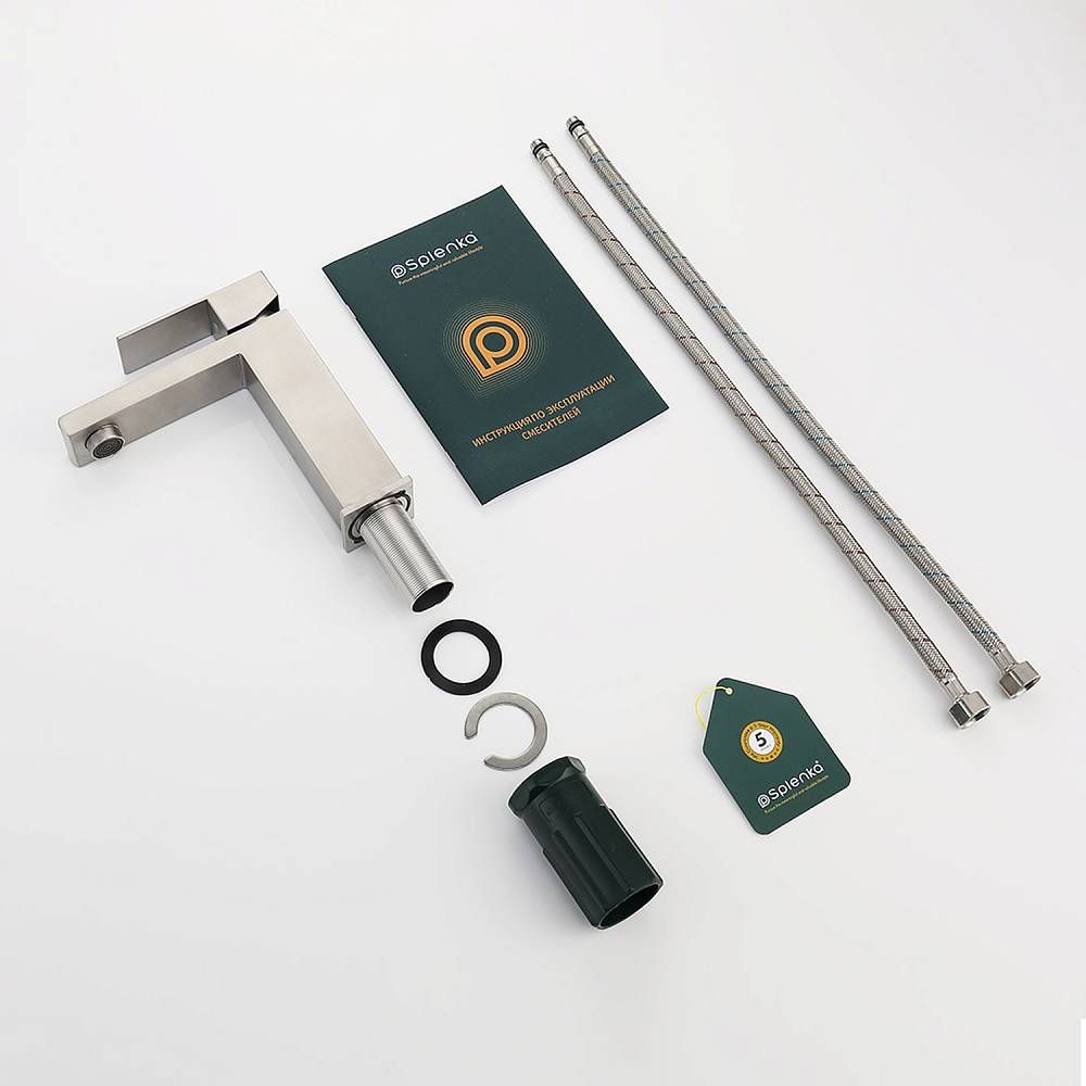 Смеситель для раковины Splenka S224.10.05, сатин. Смеситель для раковины нержавеющая сталь, квадратной формы. Смеситель с креплением на гайке. Все для монтажа и эксплуатации есть в комплекте. Гарантия 5 лет.