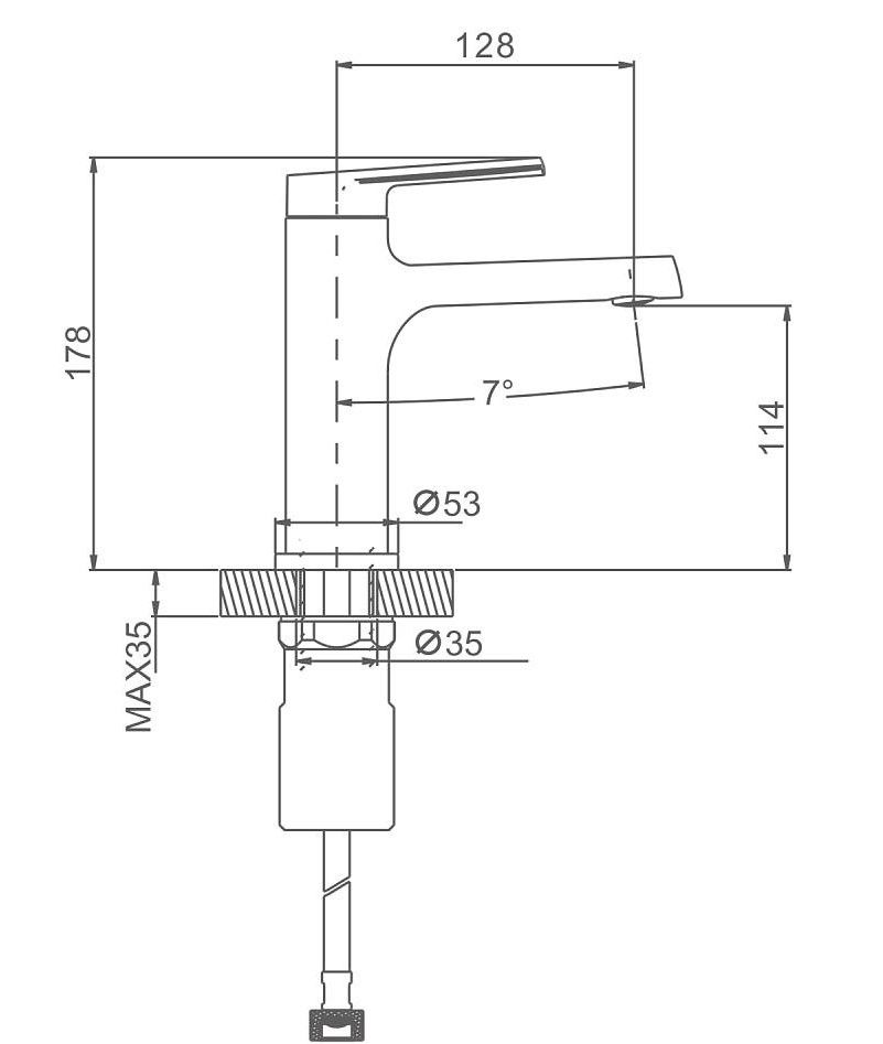 • Высота смесителя: