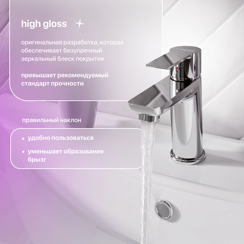 - Поверхность смесителя гладкая, с глянцевым блеском