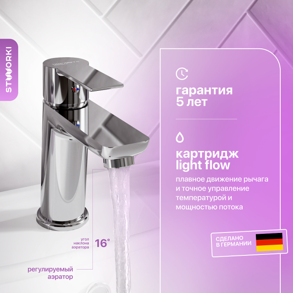 Смеситель для раковины Stworki Хельсинки HFHS02100 хром купить