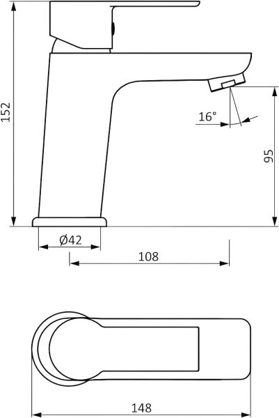 - Длина излива (расстояние от корпуса смесителя до конца излива): 10.8 см