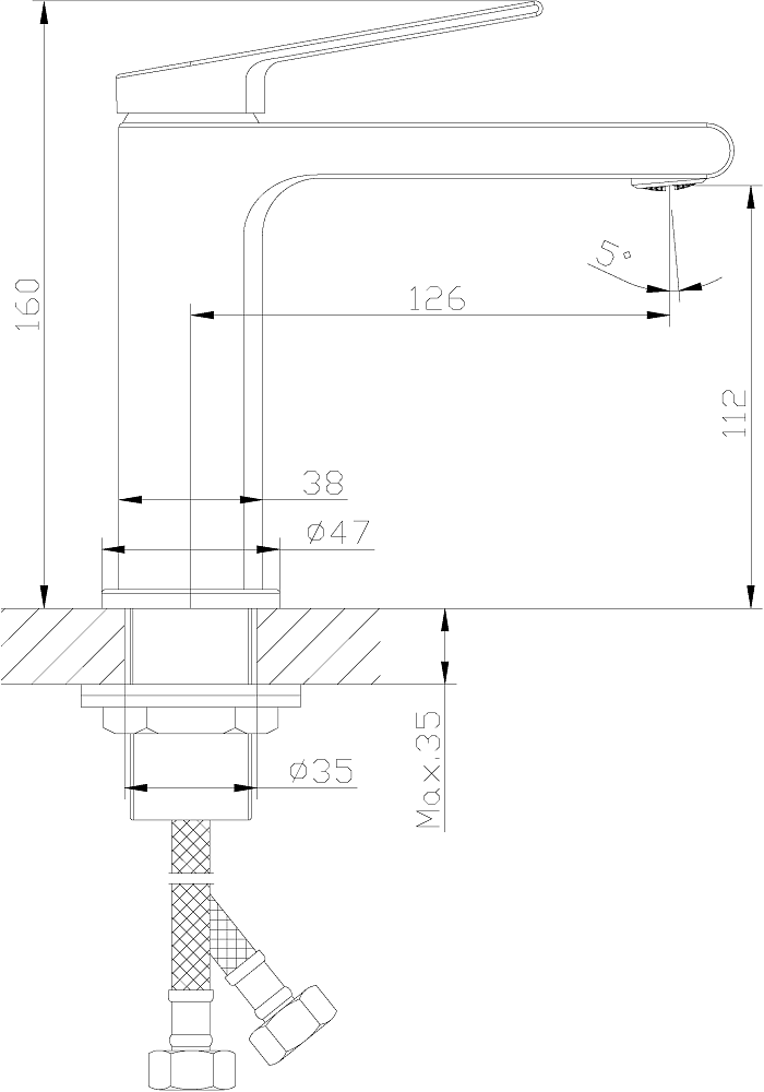 • Высота смесителя: