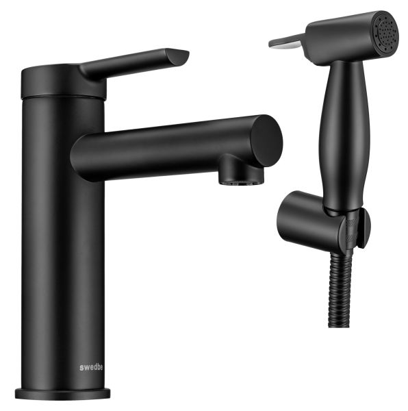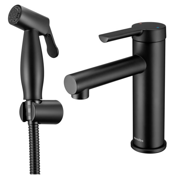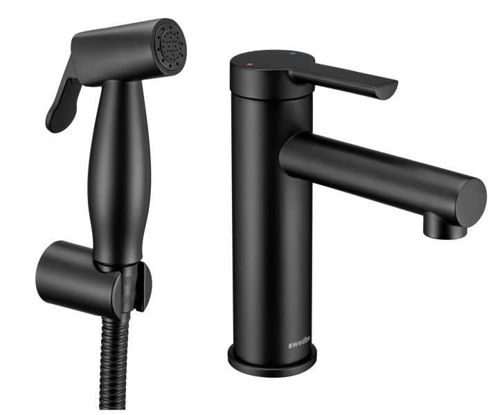 Смеситель для раковины Swedbe Diana 1060B с гигиенической лейкой чёрный