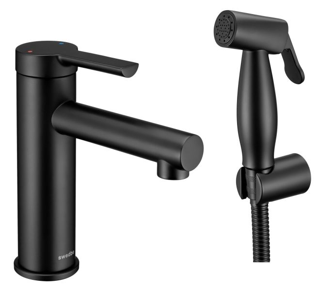 Смеситель для раковины Swedbe Diana 1060B с гигиенической лейкой чёрный купить