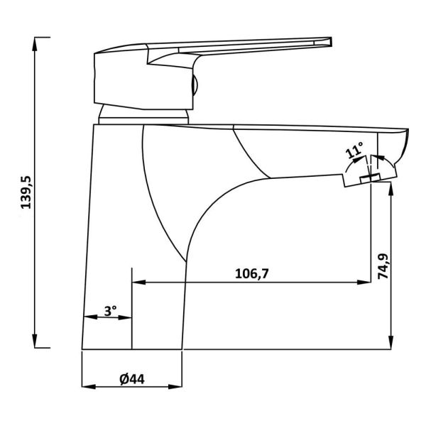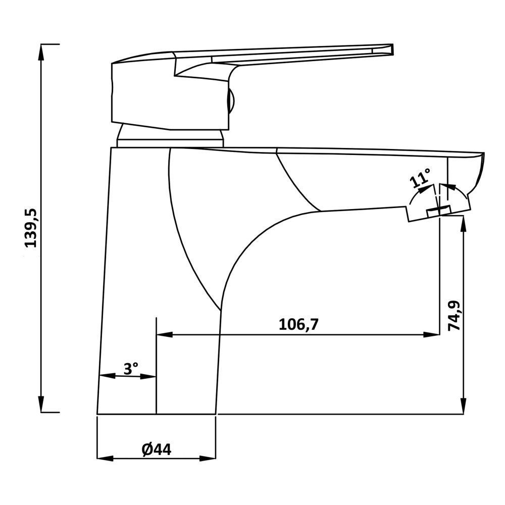 • Высота смесителя: