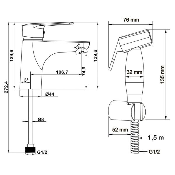 Назначение:для раковины с гигиеническим душем