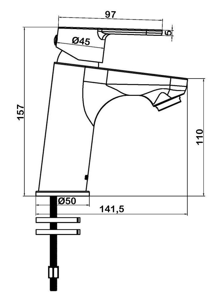 • Высота смесителя:
