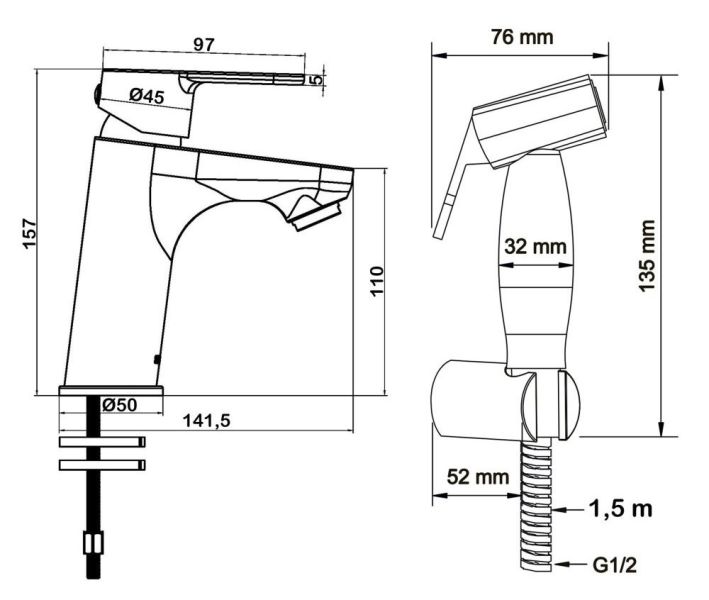 Смеситель для раковины с гигиенической лейкойКерамический картридж Sedal.Аэратор Neoperl. Гибкая подводка SoftPEX. Гигиенически стабильная латунь с высоким содержанием меди.Лейка прошла тест от протечек - 5 Bar на 24 часа2 режима, сопло из монополимера стойкого к обрастанию водным камнем, запорное седло из высококачественной латуни, кронштейн, шланг металл 1,5м.