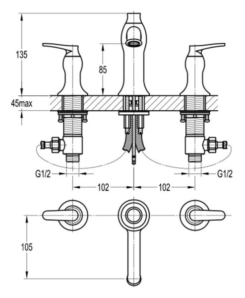 Смеситель для раковины Swedbe Terracotta 2550 на три отверстия бронза купить