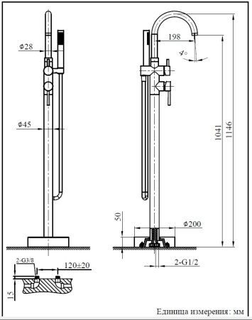 • Длина излива, см: