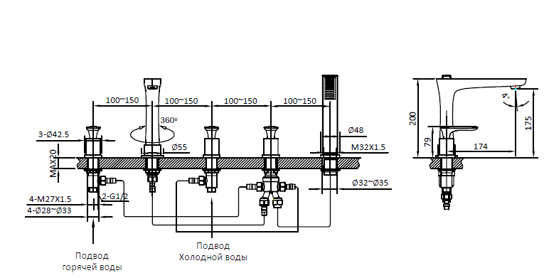 Смеситель для ванны на 5 отверстий AltroBagno Aperto 020102 Cr хром
