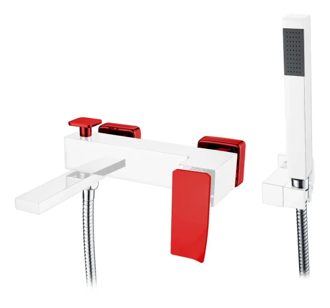 Смеситель Boheme Q для ванны, с душевым гарнитуром, хром, красный, 143-CRR.2