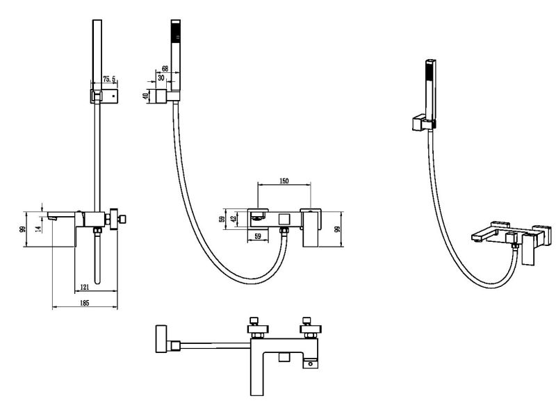• Длина душевого шланга: 150 см.