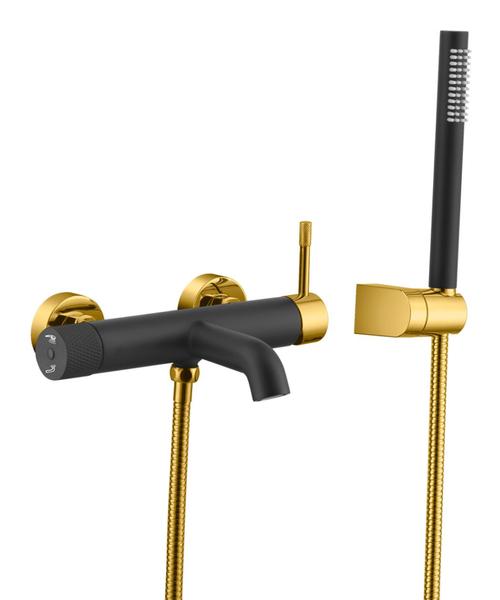 Смеситель для ванны Boheme Uno 463-BG с душевым гарнитуром.Характеристики:Цвет: черный, золото.
