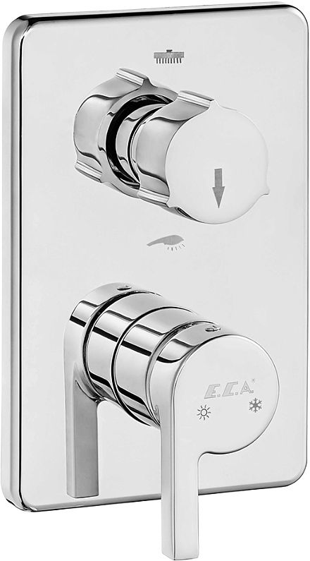 Смеситель для ванны и душа E.C.A предназначен для подачи горячей и холодной воды в ванных помещениях. Однорычажный тип управления позволяет очень быстро и плавно регулировать подачу воды одной рукой. Изделие выполнено из латуни, которая отличается прочностью, долговечностью и устойчивостью к перепадам температуры.Внутренняя часть в комплект поставки не входит.Особенности: