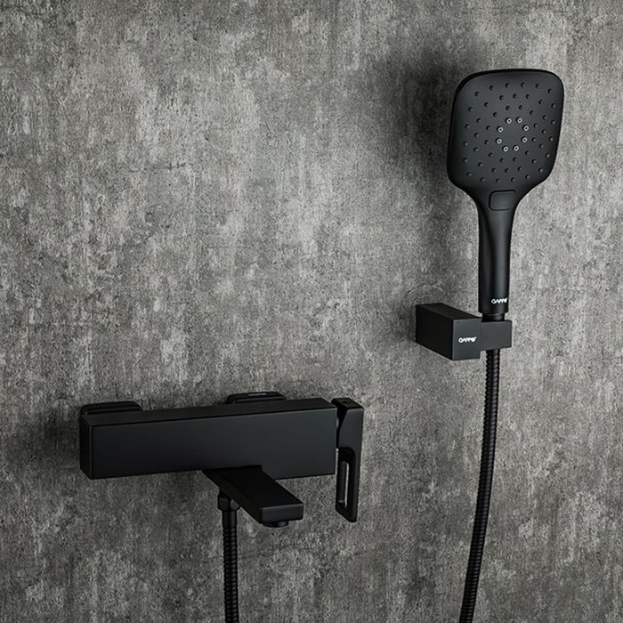 Смеситель для ванны Gappo G3217-6 — современная модель в корпусе строгой геометрической формы. Поворотный излив является переключателем на душ. Смеситель изготовлен из латуни с черным матовым покрытием, оснащен керамическим картриджем Sedal 35 мм, и укомплектован душевым гарнитуром с трехрежимной лейкой и вращающимся шлангом 1500 мм.